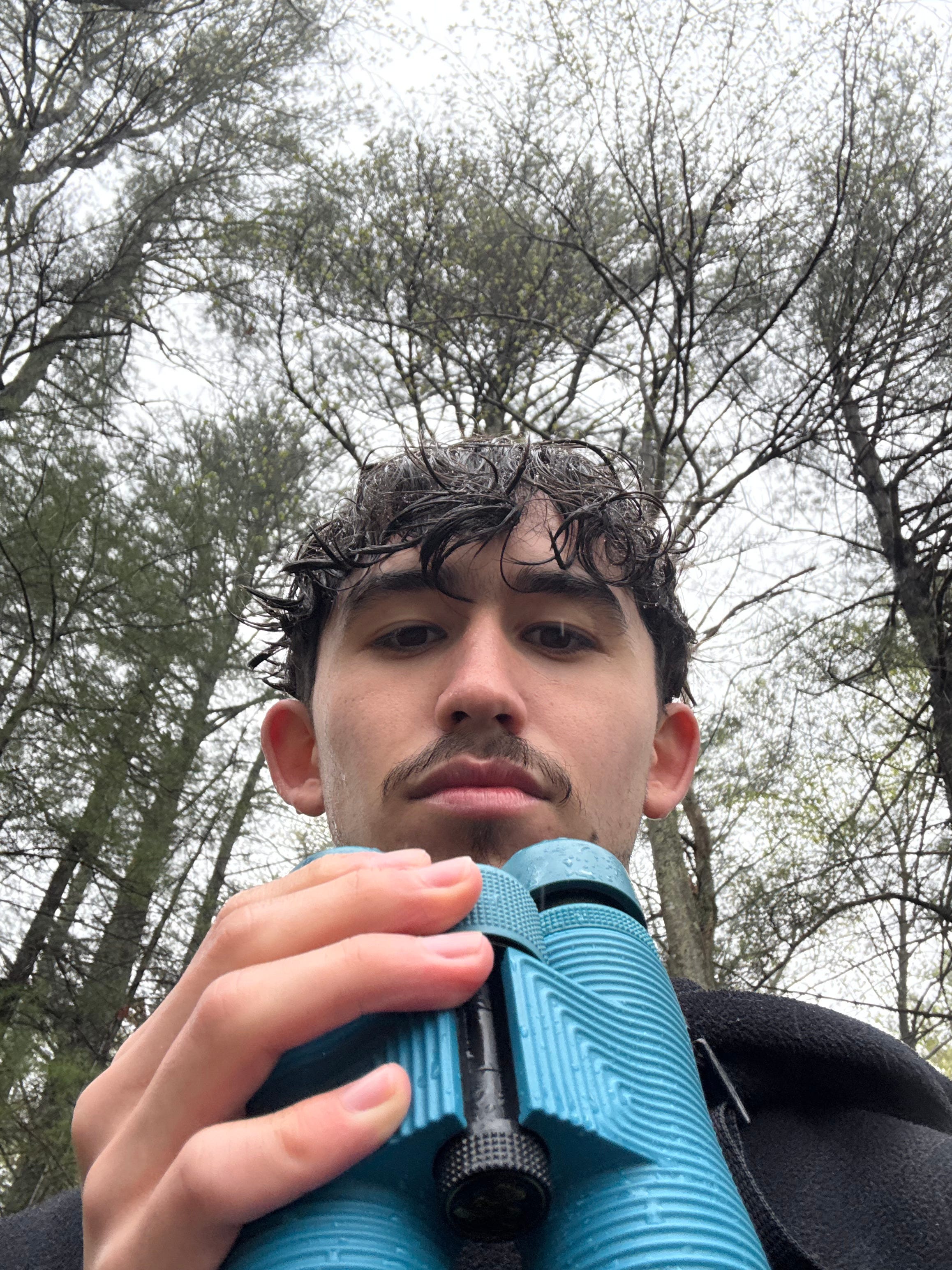 After about two hours of walking the trail in a light mist, it turned into a full downpour. And naturally, right in the middle of it was another big flock of warblers—impossible to see anything through the rain. (You can see my disappointment in the photo above.)