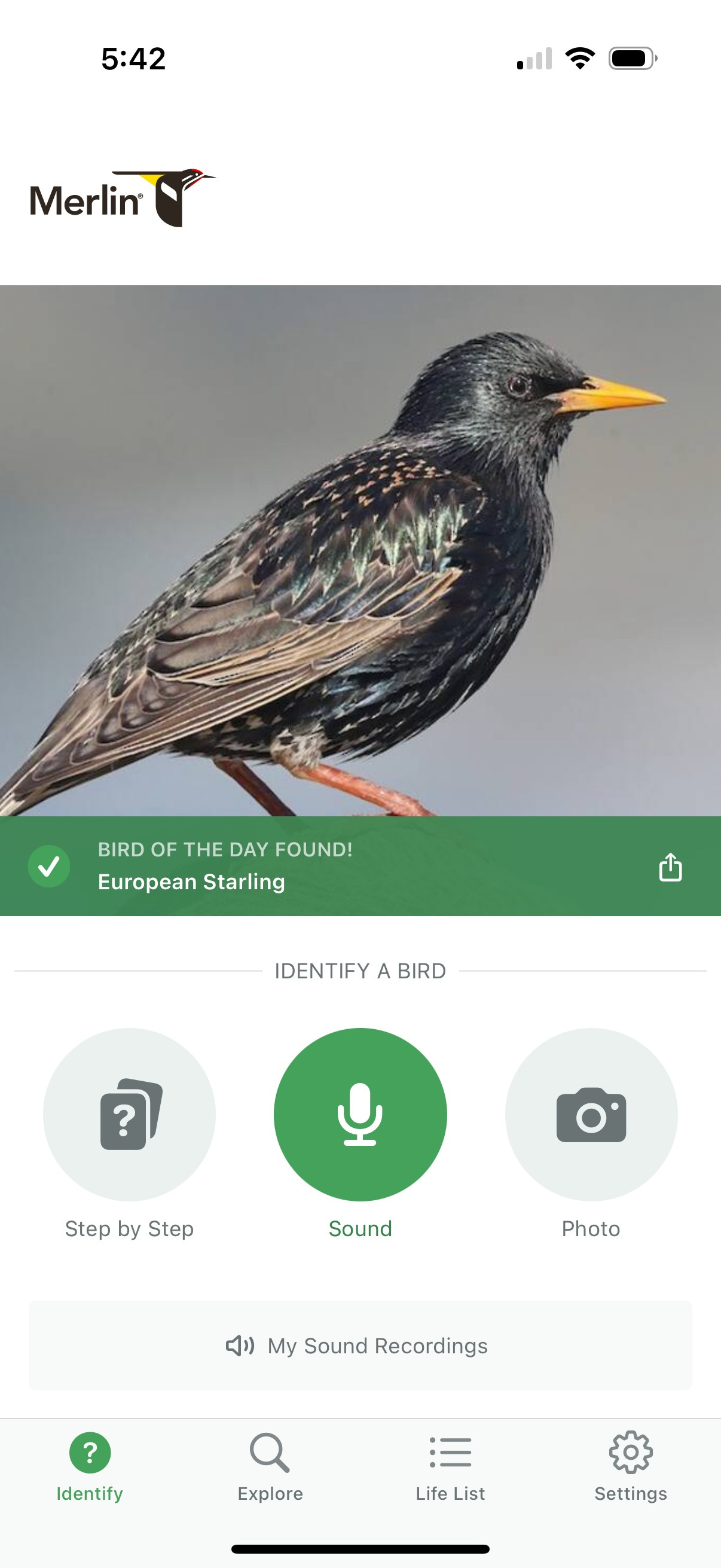 Today, I woke up exhausted. I barely cracked my eyes open before a European Starling started chattering away right outside my window. This makes me think that they’re going to nest in the gutters again, not surprising. Half-asleep, I grabbed my phone and checked Merlin to see my Bird of the Day, and lo and behold it was the very culprit outside my window.